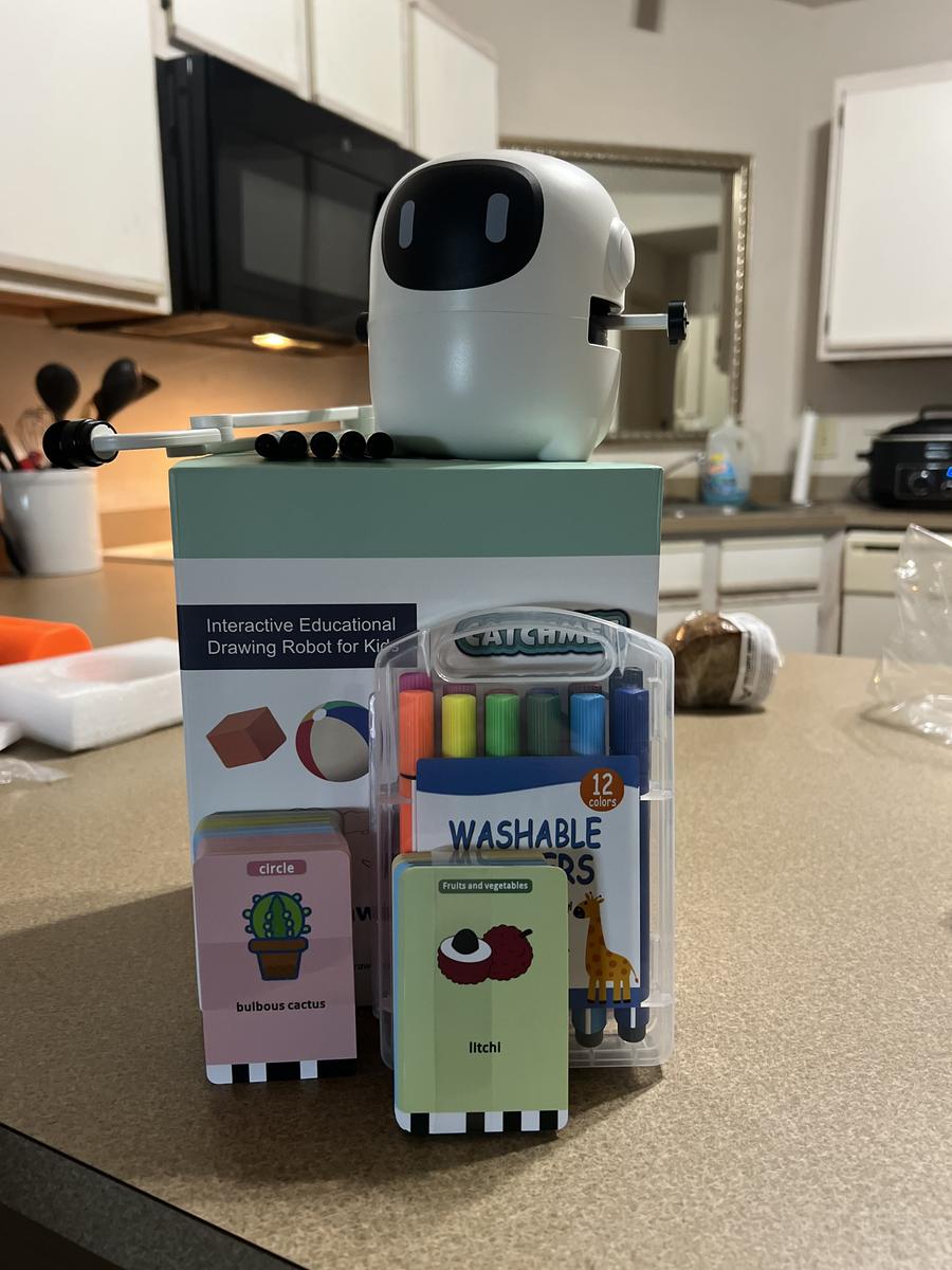 This Children's Drawing Robot is a companion that teaches simple painting, fosters skills like creativity and focus, and plays delightful built-in tunes.