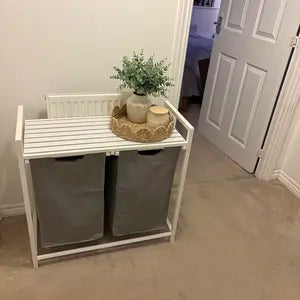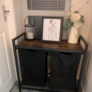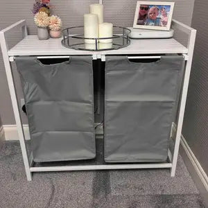 Tired of laundry mess? This stylish, sturdy sorter features three removable bags and a beautiful wood top. Perfect for pre-sorting and folding. Upgrade your laundry room organization now.