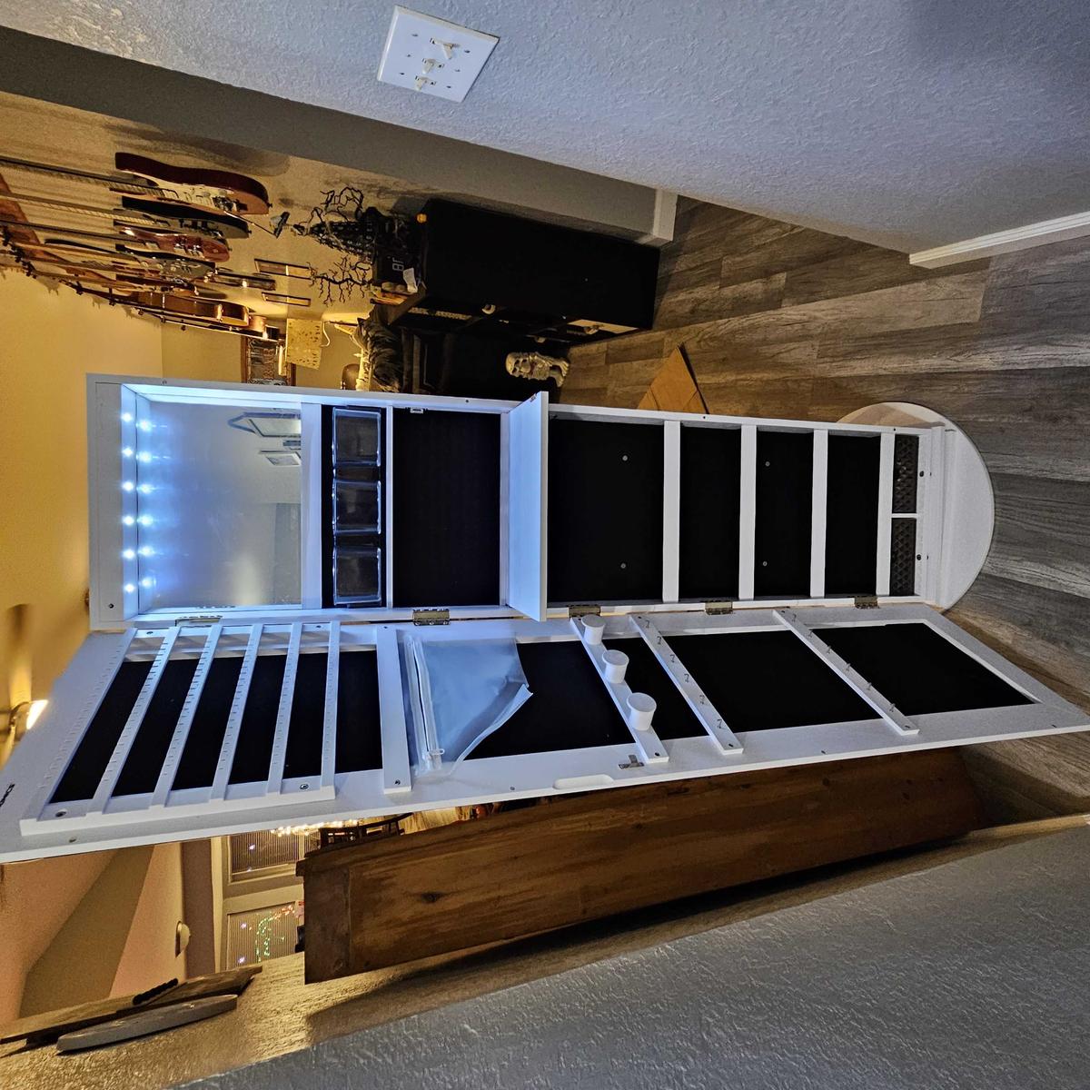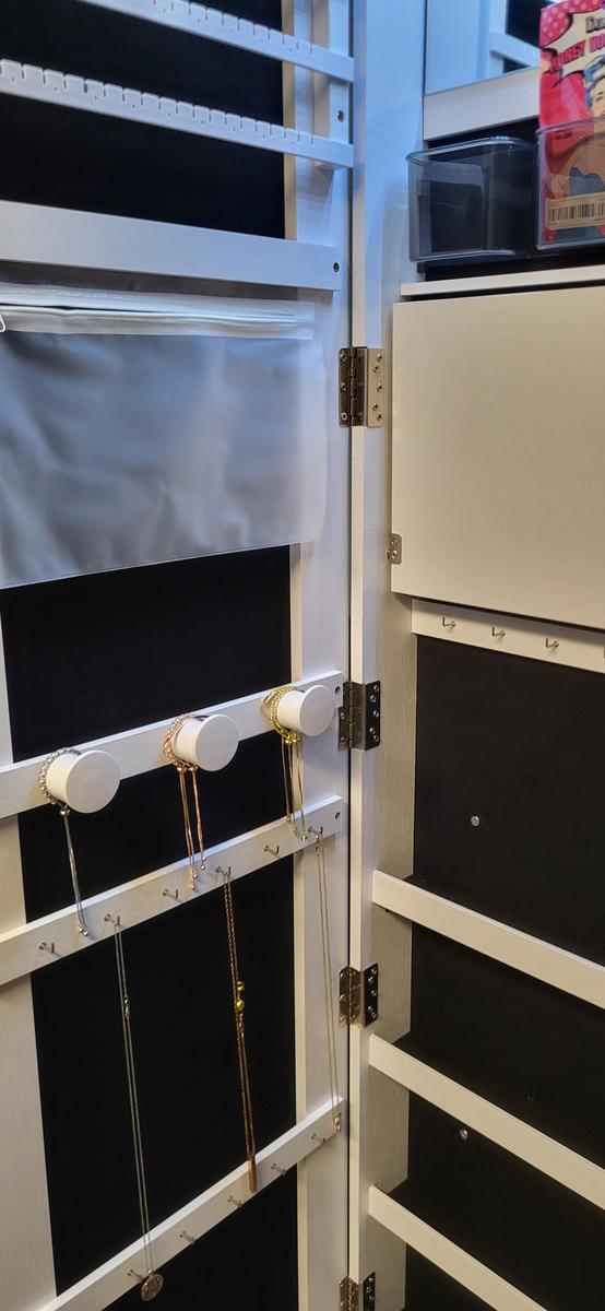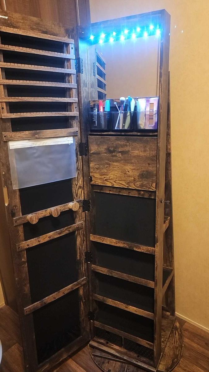 Transform your space with this sleek jewelry cabinet featuring a full-length mirror, automatic LED lights, and ample storage for all your accessories. Perfect for any modern home.