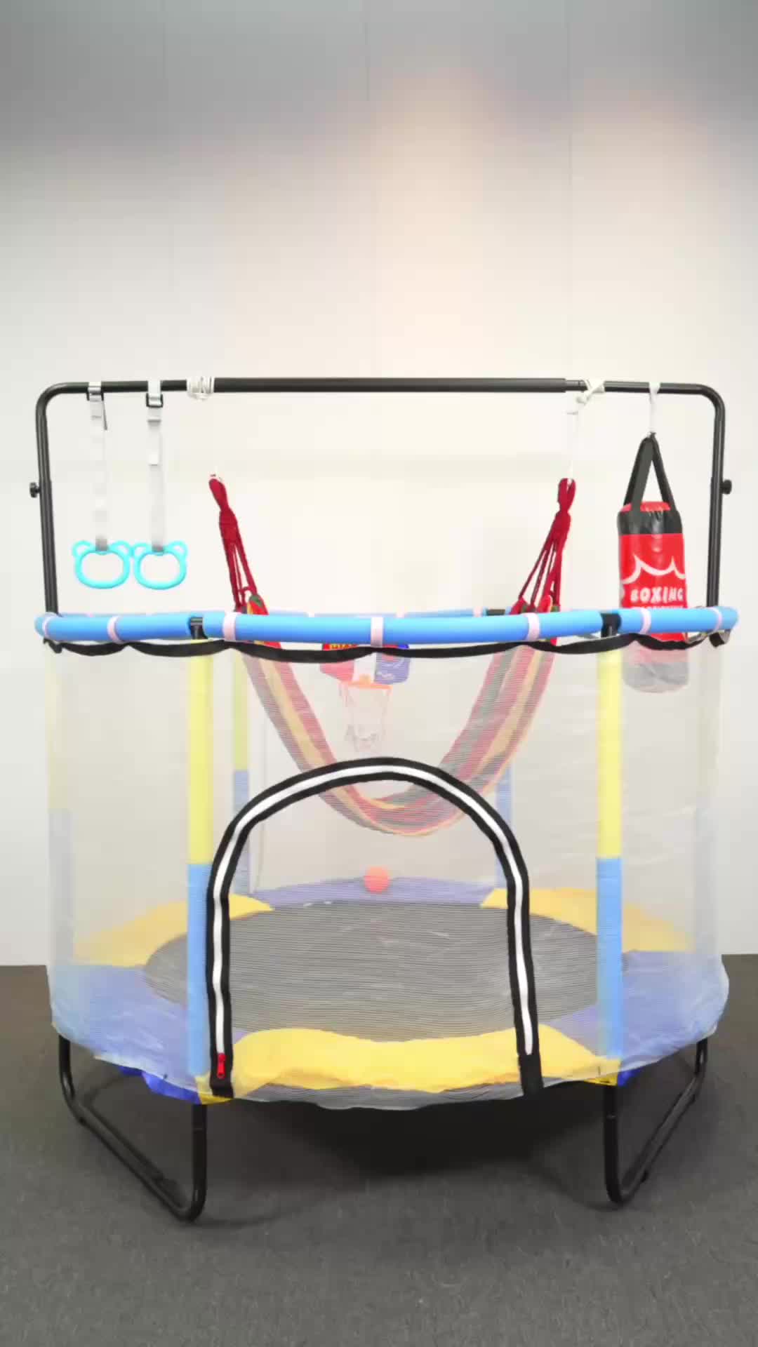 Let your kids bounce, swing, and play basketball all in one! This multi-functional trampoline promotes active fun and fitness.