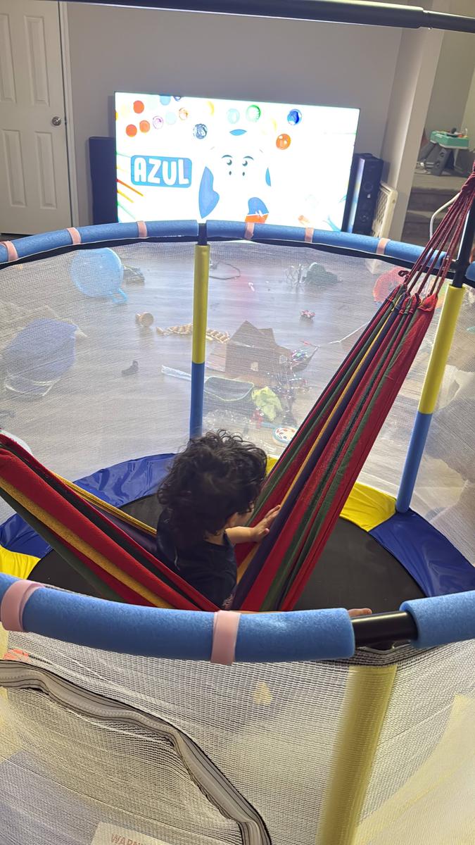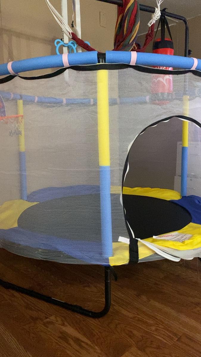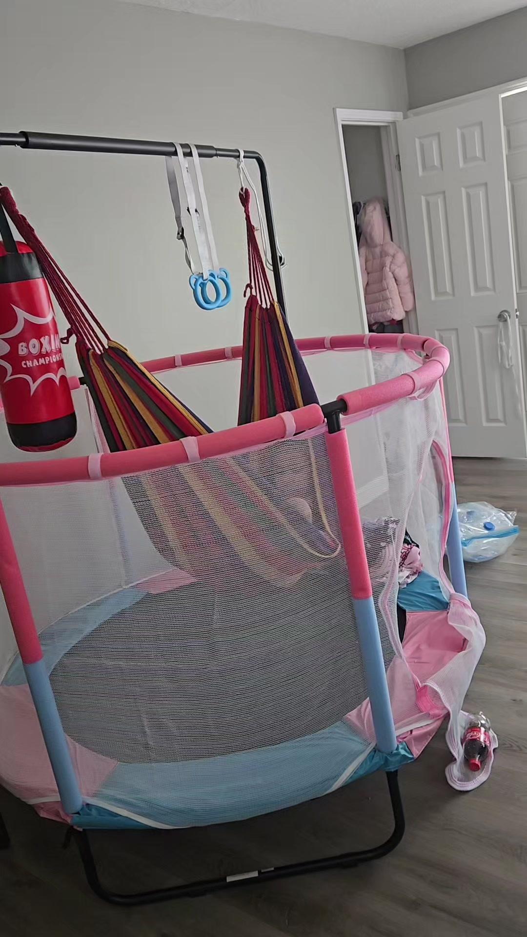 This trampoline is designed for children aged 3 to 10 years old. It’s ideal for active kids who love to jump, swing, and play.